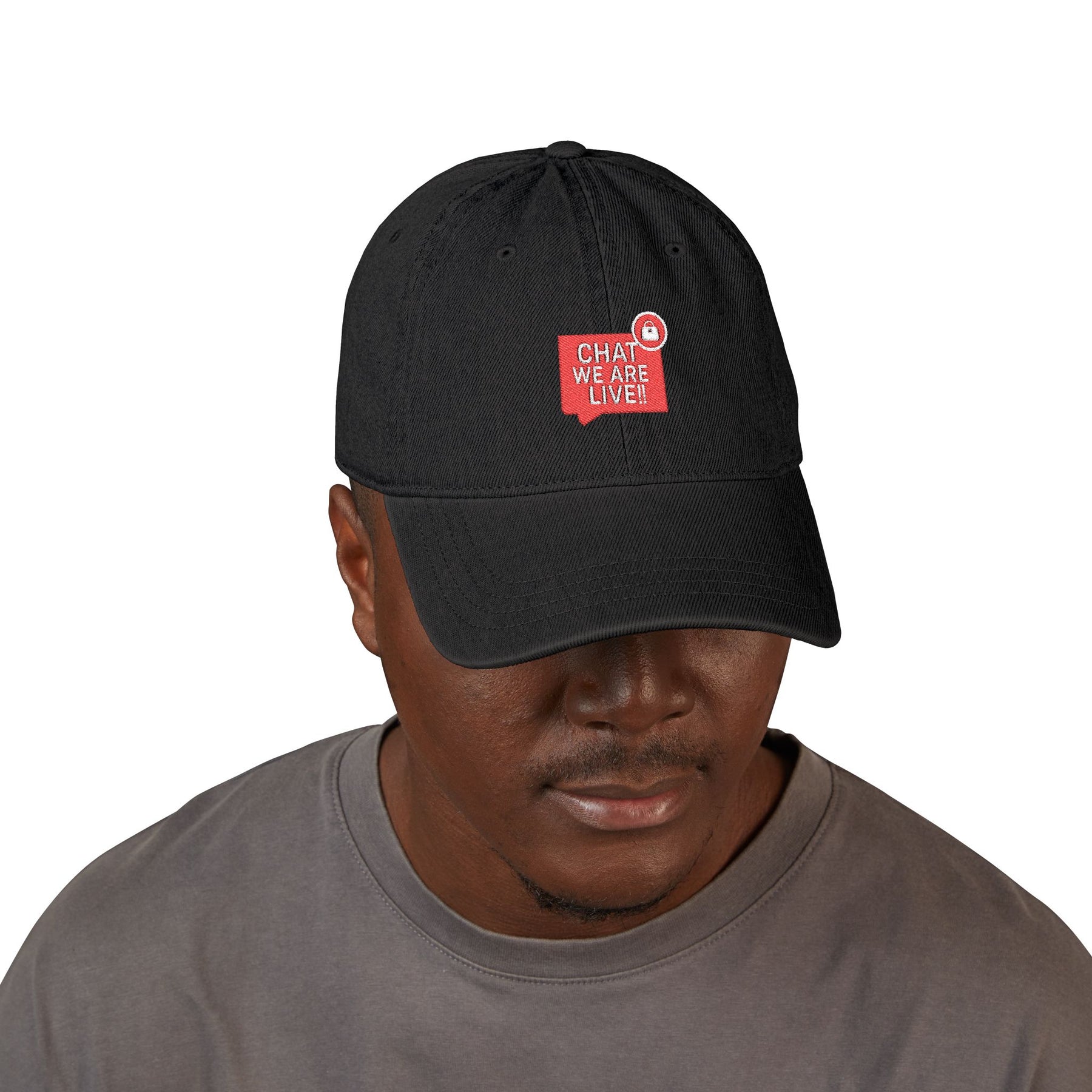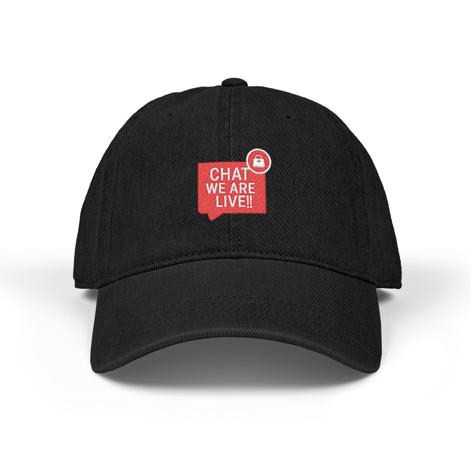 Live Chat Embroidered Denim Hat, Casual Apparel, Gift for Streamers, Summer Accessory, Trendy Everyday Cap