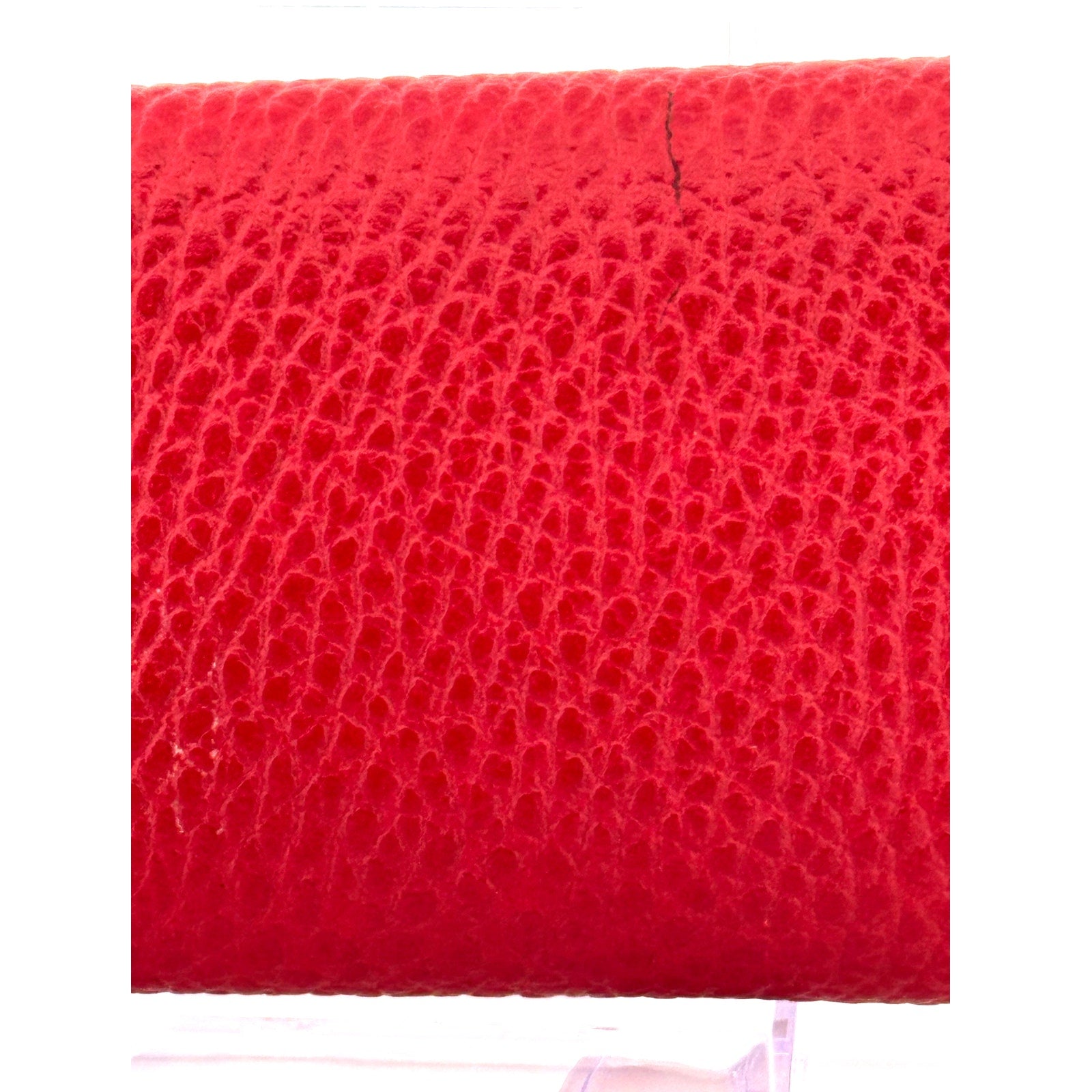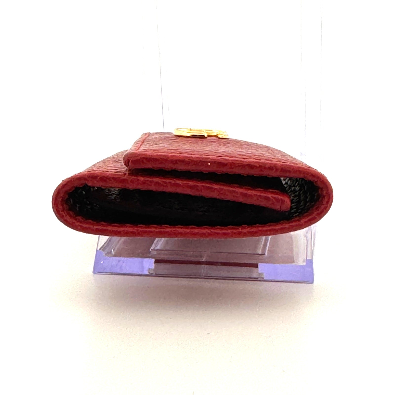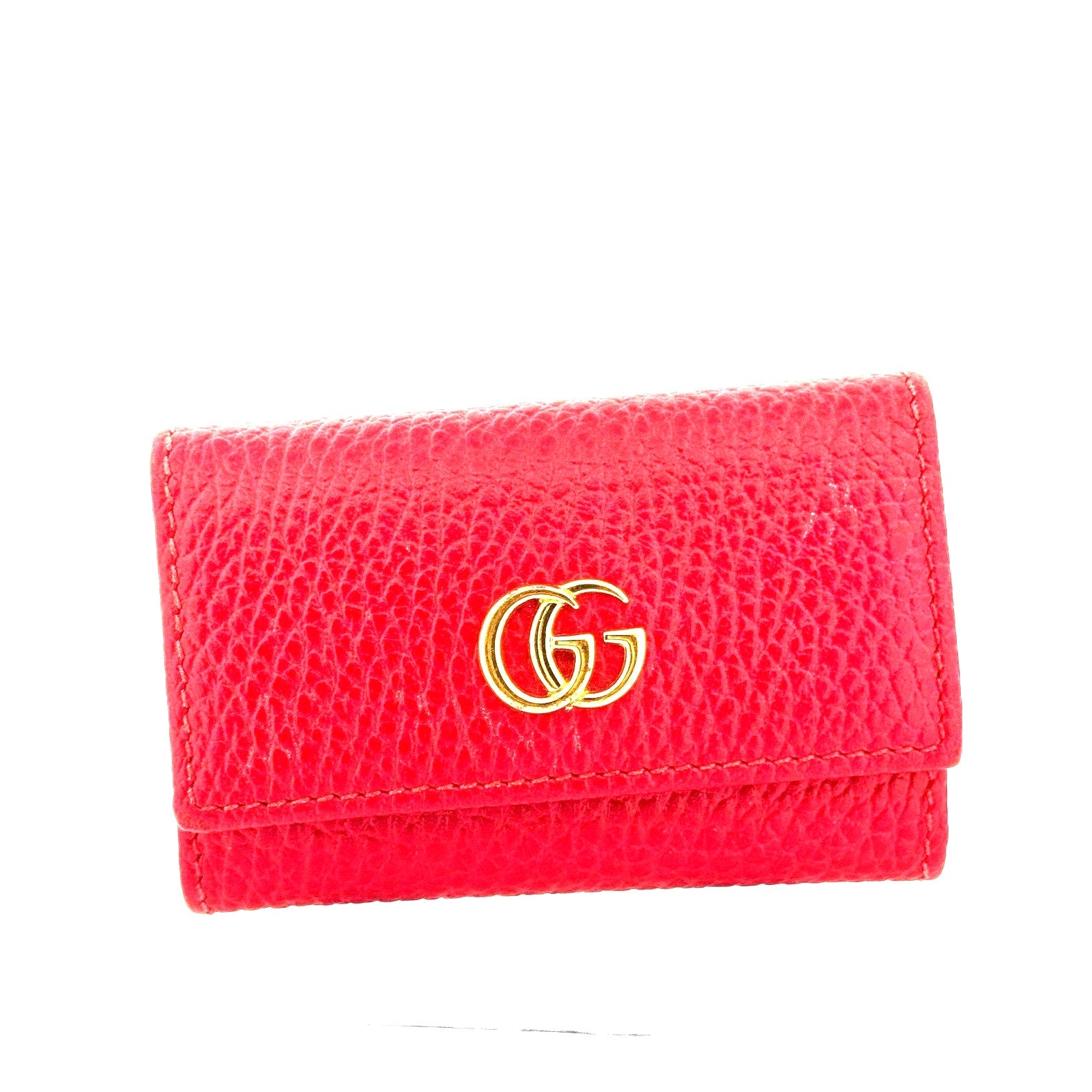 Crafted from luxurious red pebbled leather, this Gucci GG Marmont key case features the signature gold double-G logo on the front flap and a snap closure. Inside, it includes six key hooks and a key ring in polished gold-tone hardware. Compact yet elegant, this piece is perfect for organizing keys while adding a pop of timeless Gucci style.