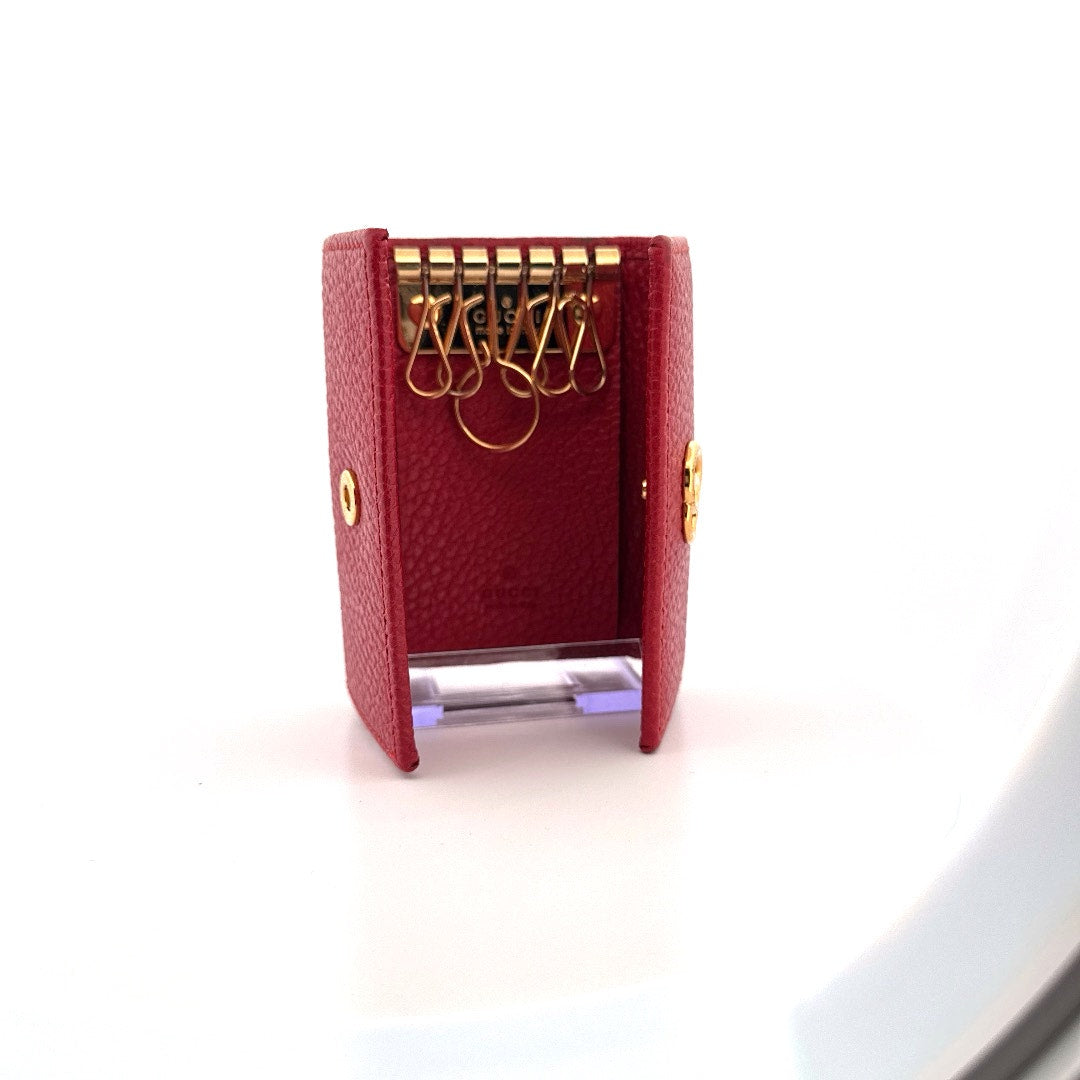 πŸ”΄ Gucci GG Marmont 6-Hook Key Case – Red Pebbled Leather