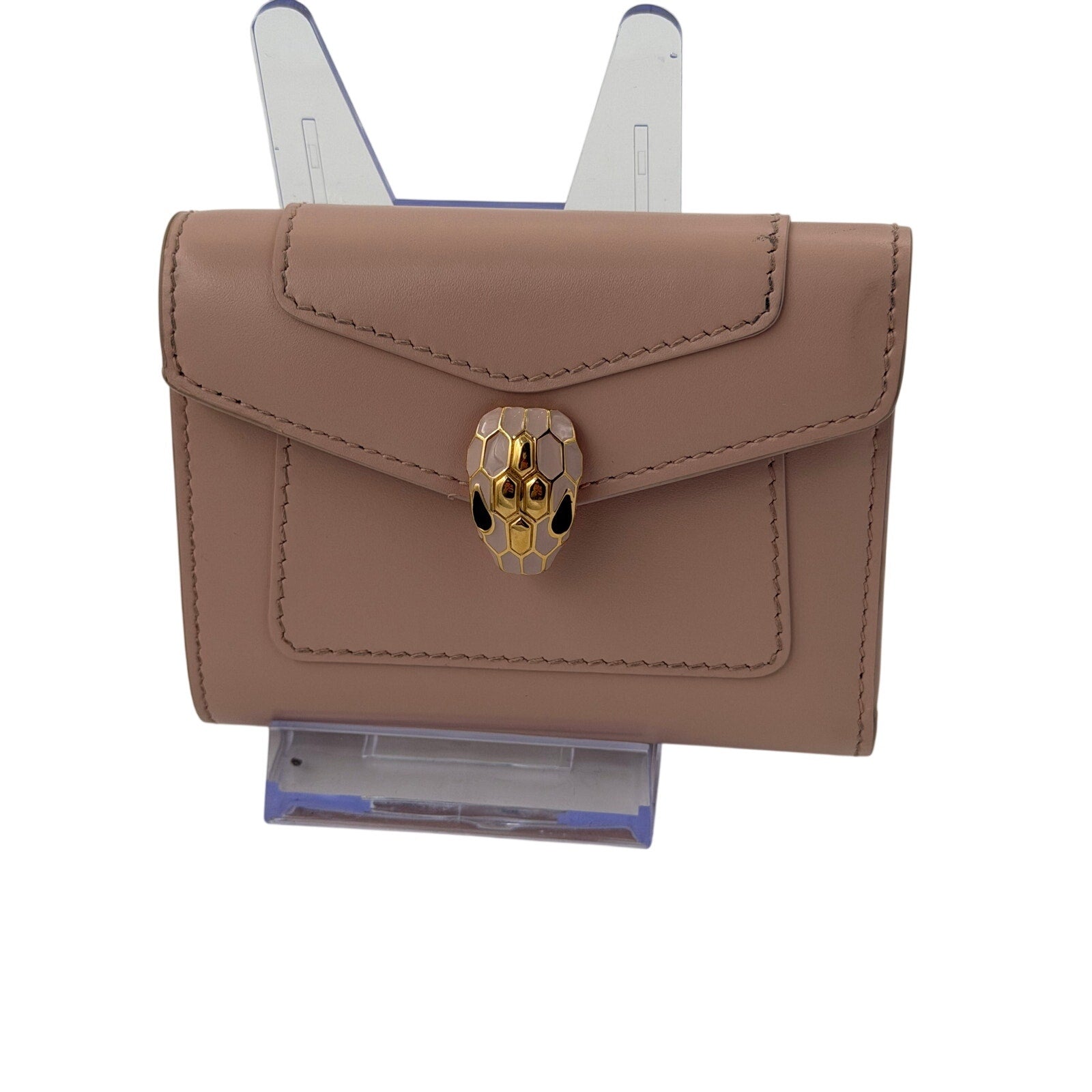 Elevate your style with this stunning Bvlgari Serpenti Forever trifold wallet. Crafted in luxurious pink calf leather, this wallet exudes sophistication and elegance.