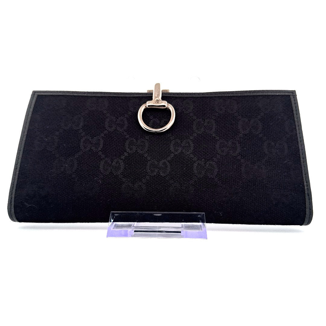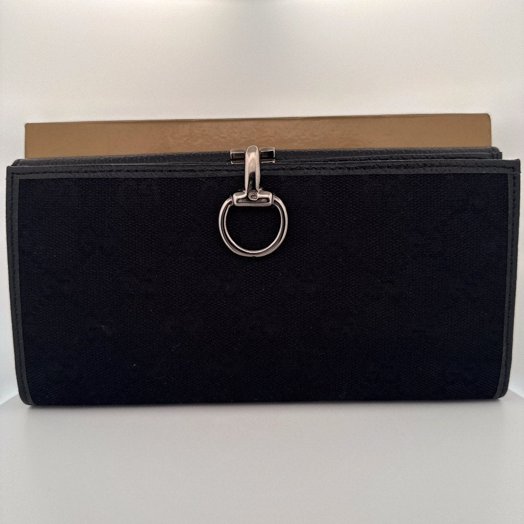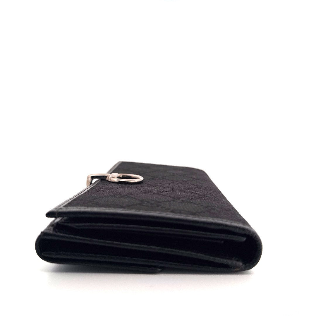 Gucci GG Canvas Black Continental Wallet with Silver Ring Detail