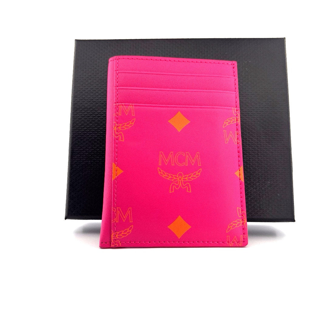MCM Visetos Logo Card Holder in Fuchsia/Orange (Full Set with Box)